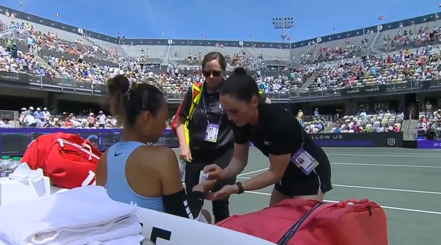 在4月5日进行的WTA500查尔斯顿站女单1/4决赛上,郑钦文带伤作战0-2不敌亚历山德洛娃,泥地13连胜遭终结。比赛中郑钦文手肘受伤缠满绷带,三次理疗+吃止疼片。