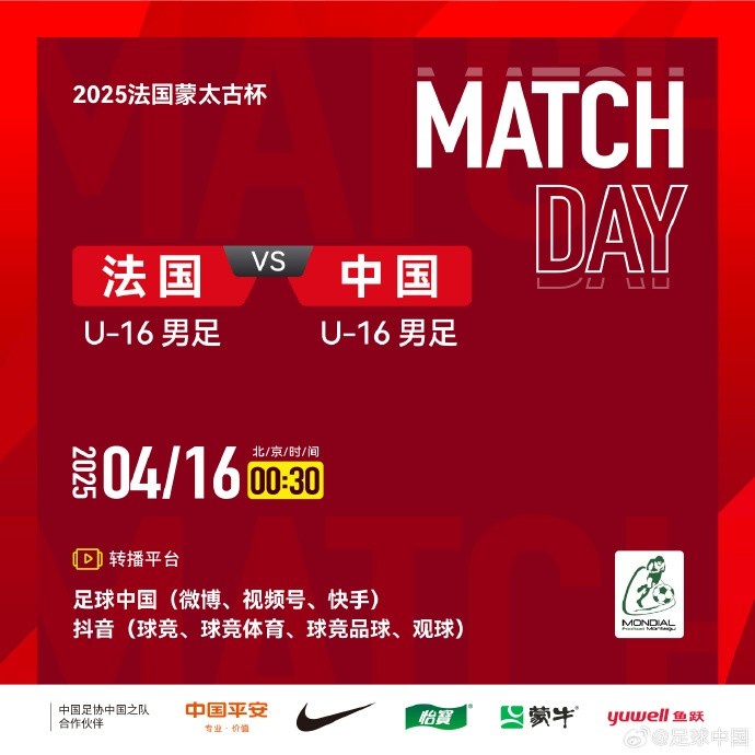04月15日讯 蒙太古U16小组赛A组,中国男足U16对阵法国U16,赛前首发公布。